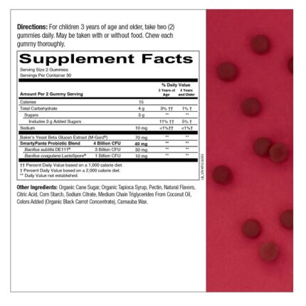 SmartyPants Gummy Vitamins Kid’s Non-GMO, Gluten-free, Patent-Pending Probiotic and Pre-biotic Immunity Gummies