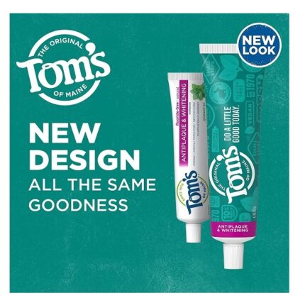 Tom’s of Maine Antiplaque and Whitening Fluoride-Free Toothpaste, Peppermint, 5.5 Ounce, Pack of 2