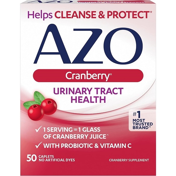 AZO Cranberry Urinary Tract Health, 50 Count Yeast Infection & Vaginal Symptom Relief Tablets, 60 Count