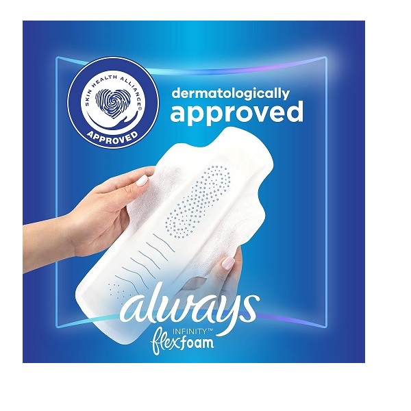 Always Infinity Feminine Pads with Wings for Women, Size 5, Extra Heavy Overnight, Unscented, 22 Count