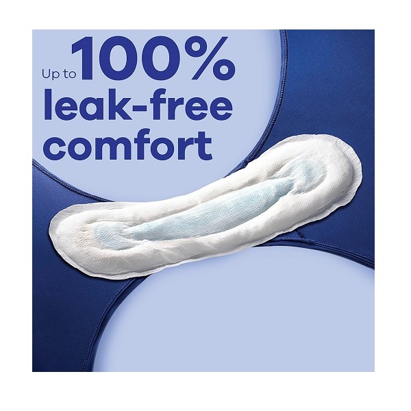 The RapidDry layer absorbs quickly to keep you feeling fresh. LeakGuard helps protect against leaks, while SecurelyFits ensures the pad stays in place even when you move, walk, travel, or work long hours.