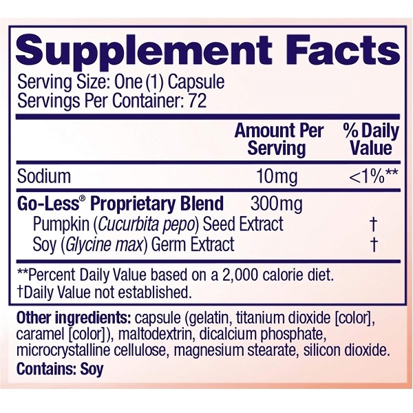 Product 1: GO LESS This safe, drug-free supplement contains a naturally sourced blend that supports bladder strength and helps reduce the urge to go, day and night.* Healthy bladder control helps manage those frustrating nighttime visits to the bathroom