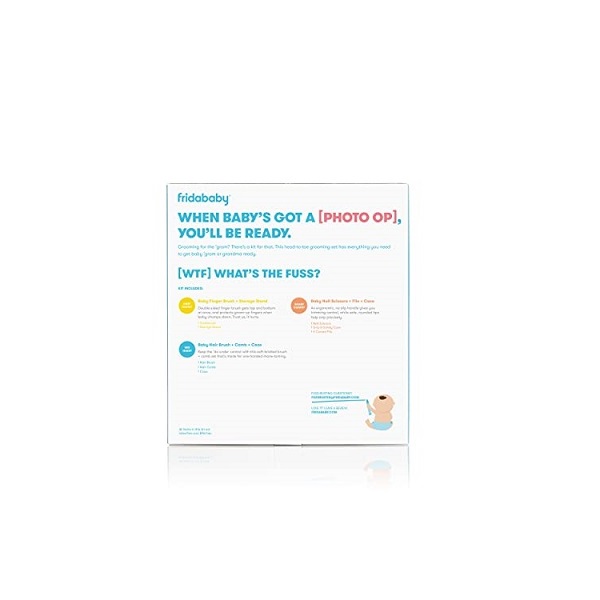 - FridaBaby Grooming Kit Includes Finger Brush with Storage Stand Hair Brush with Case Styling Hair Comb Easy Grip Nail Scissors with Nail File and Case