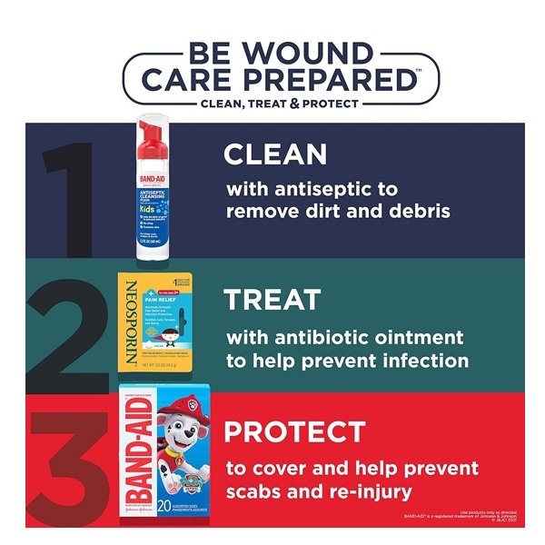 • These Band-Aid Brand Adhesive Bandages come in a box with an assortment of sizes and fun character designs. They are great for minor wounds, suitable for young kids and can bring a smile to their face with exciting graphics