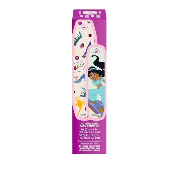• Fun bandages designed with Disney Princess characters from your child’s favorite Disney Princess movies. These colorful designs make first aid more fun for your child