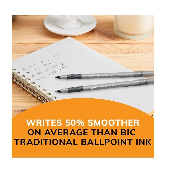 BIC Round Stic Grip Xtra Comfort Ball Pen, Medium Point (1.2 mm), Black, 36-Count