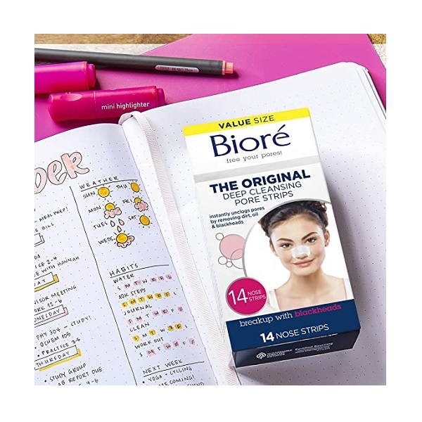 Biore Original, Deep Cleansing Pore Strips, 14 Nose Strips for Blackhead Removal, with Instant Pore Unclogging, features C-Bond Technology, Oil-Free, Non-Comedogenic Use