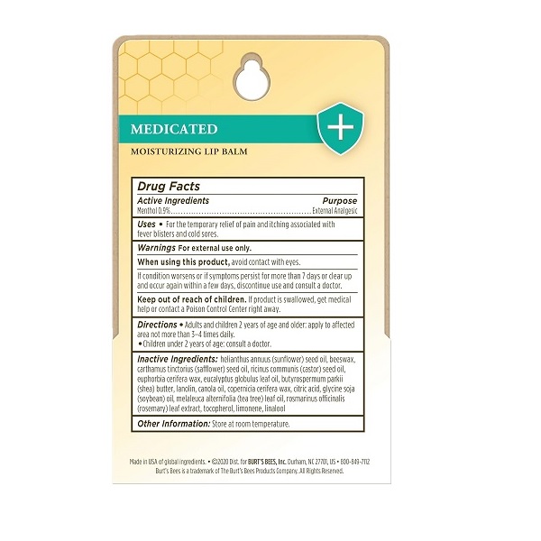 Burt’s Bees 100% Natural Medicated Moisturizing Lip Balm with Menthol & Eucalyptus, 2 Tubes in Blister Box