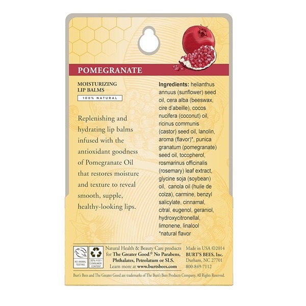 Burt’s Bees Lip Balm, Pomegranate Oil Blister Box, 2 Count
