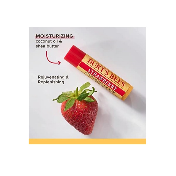 - Lip CARE: Bursting with all natural flavors, refresh and nourish your lips with Burt’s Bees Moisturizing Lip Balm in four naturally Nourishing flavors: Original beeswax, strawberry, coconut & Pear and vanilla bean.