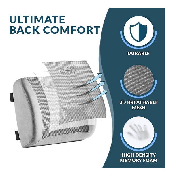 ComfiLife Lumbar Support Back Pillow Office Chair and Car Seat Cushion – Memory Foam with Adjustable Strap and Breathable 3D Mesh