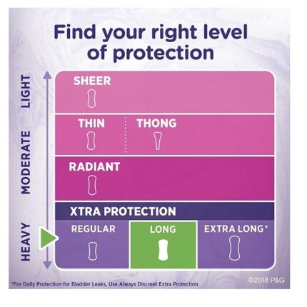 Discreet, Incontinence Liners, Very Light, Long Length, 44 Count