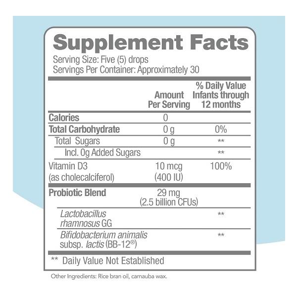 Product 2: GENTLE INGREDIENTS: Contains 100% of the daily value of Vitamin D recommended by the American Academy of Pediatrics (AAP) Lactobacillus rhamnosus GG (LGG) and Bifidobacterium animalis subsp. lactis BB-12 probiotics proven to help with occasional tummy troubles
