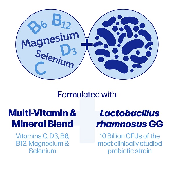 Designed with a high potency of essential vitamins & minerals, plus a clinically-proven probiotic for 8 comprehensive health benefits in one daily capsule.