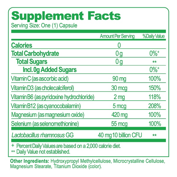 With essential multi-vitamin-mineral blend which contains 100% or greater than the daily value of Vitamins C, D3, B6, B12, Magnesium & Selenium; plus clinically studied probiotic strain Lactobacillus rhamnosus GG, to optimize men’s microbiome for overall health & wellness benefits.