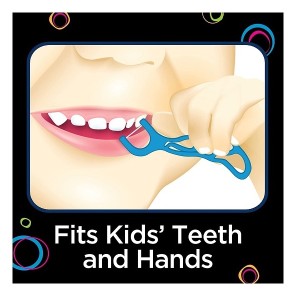 - Fun-shaped floss pick easily fits in-between kids’ small teeth