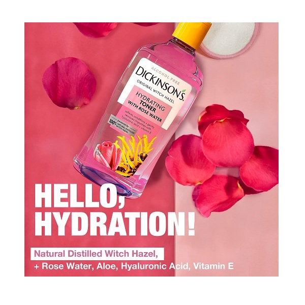 Dickinson’s Enhanced Witch Hazel Hydrating Toner with Rosewater, Alcohol Free, 98% Natural Formula, 16 Fl. Oz.