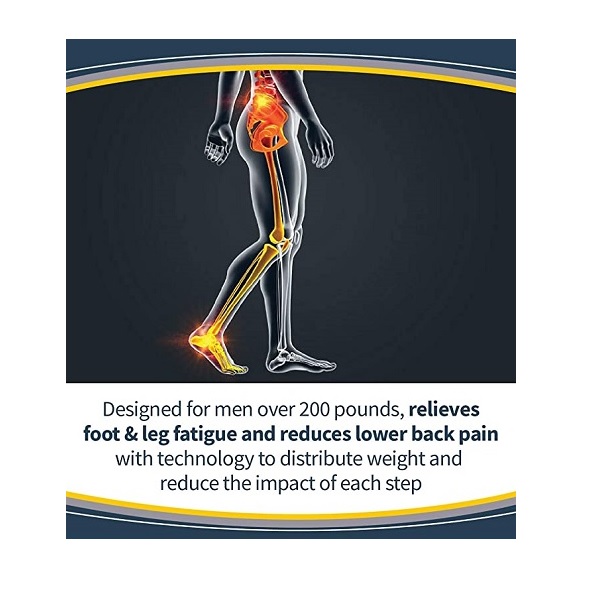 - Lower back pain and foot & leg fatigue can result from the everyday pounding your feet take during daily activities such as standing and walking. This problem can be particularly accentuated for men over 200 lbs.