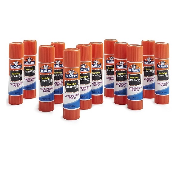 Elmer’s Disappearing Purple School Glue Sticks, 0.21 oz Each, 12 Sticks per Pack (E1559)