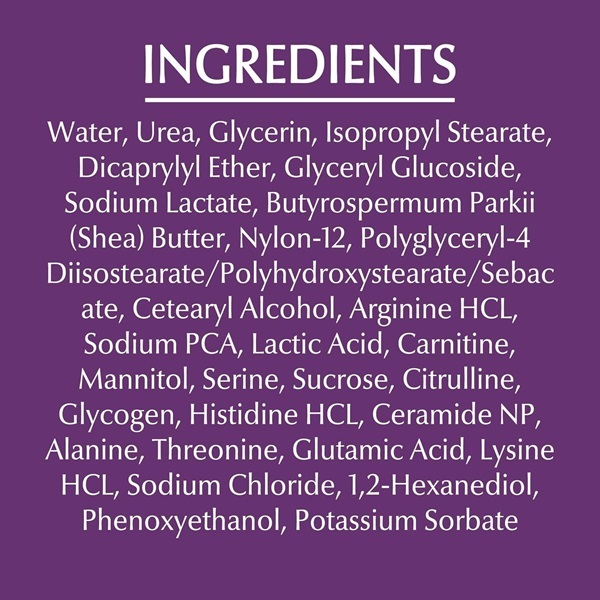 Active Ingredients: ceramide,cetearyl alcohol,glycerin,glyceryl glucoside,histidine,isopropyl stearate,lactic acid,phenoxyethanol,potassium sorbate,serine,sodium chloride,sodium lactate,sodium pcaceramide,cetearyl alcohol,glycerin,glyceryl glucoside,histidine,isopropyl stearate,lactic acid,phenoxyethanol,potassium sorbate,serine,sodium chloride,sodium lactate,sodium pca