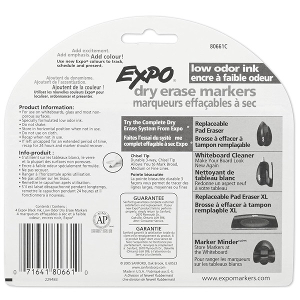 Expo Low Odor Chisel Tip Dry Erase Markers, 4 Black Markers (80661)