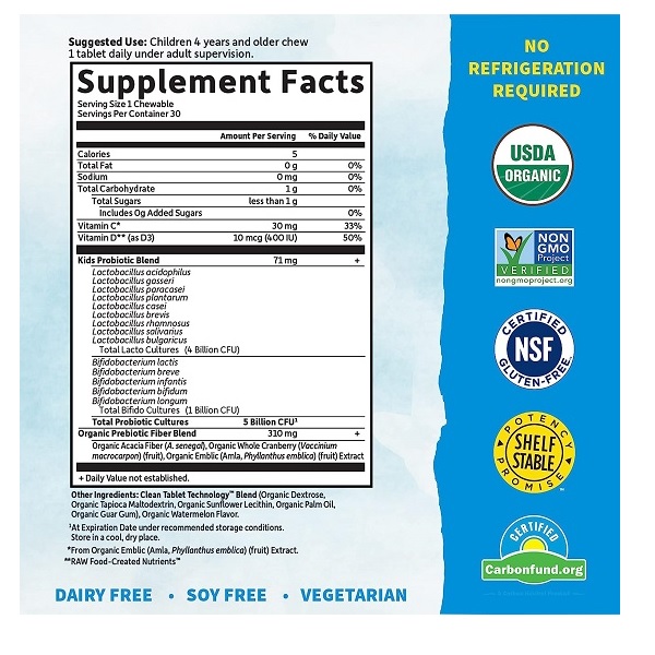 Garden of Life, Dr. Formulated Probiotics, Organic Kids+, Probiotics + Vitamins C & D, 5 Billion, Tasty Organic Watermelon, 30 Yummy Chewables