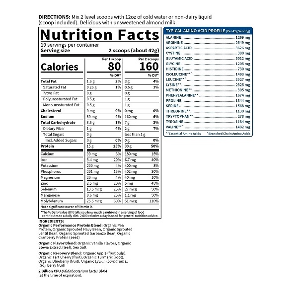 Garden Of Life Sport Organic Plant-Based Protein – BCAA Amino Acid Protein Powder, Vanilla 28.4oz (1lb 12oz / 806g) Powder