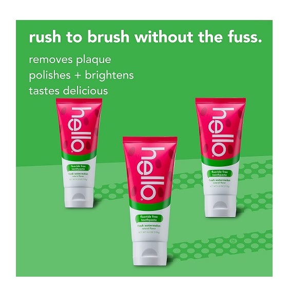 - hello kids fluoride free and sls free toothpaste, natural watermelon 4.2oz