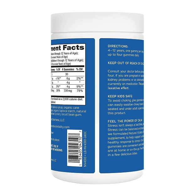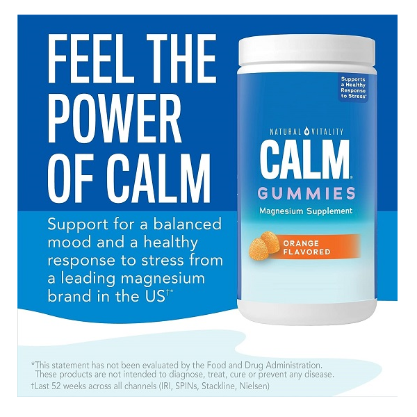 Natural Vitality Calm, Magnesium Citrate Supplement, Stress Relief Gummies, Supports a Healthy Response to Stress, Gluten Free, Vegan, Orange, 240 Gummies
