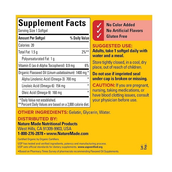 Nature Made Organic Flaxseed Oil 1400 Mg Omega 3 – 6 – 9 100 Liquid Softgels
