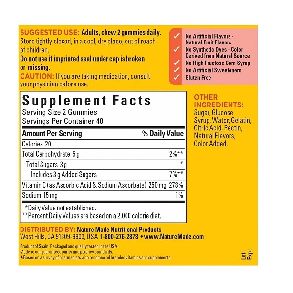 Nature Made Vitamin C Adult Gummies Tangerine, 80 Count