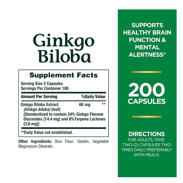 Nature’s Bounty, Ginkgo Biloba, 60 mg, 200 Capsules