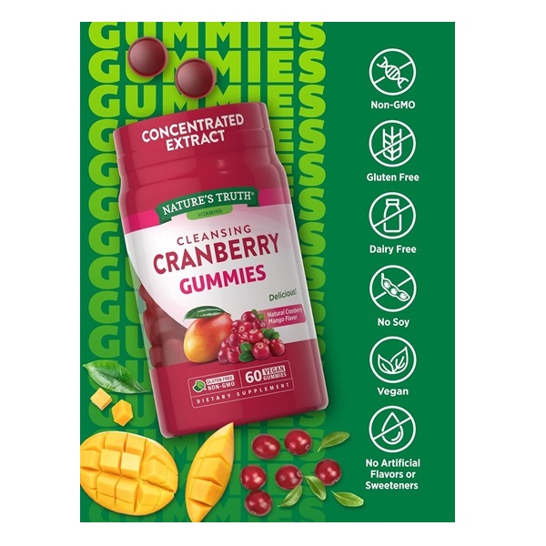 Nature’s Truth Cranberry Gummies | 60 Count | Vegan, Non-GMO & Gluten Free Supplement | Supports Urinary Tract Health | Cranberry Mango Flavor