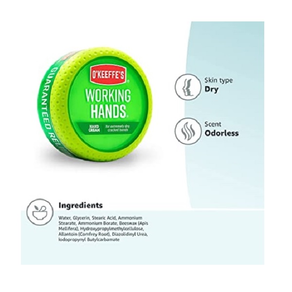 O’Keeffe’s Working Hands Hand Cream is a concentrated hand cream that heals, relieves and repairs extremely dry, cracked hands