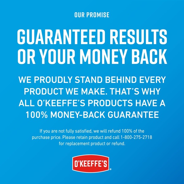 - O’Keeffe’s for Healthy Feet Foot Cream works fast; Most people start seeing improvements in their dry cracked feet in only a few days