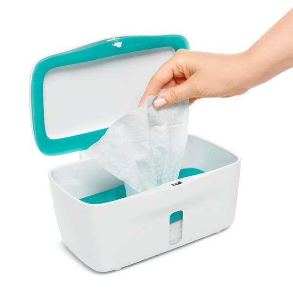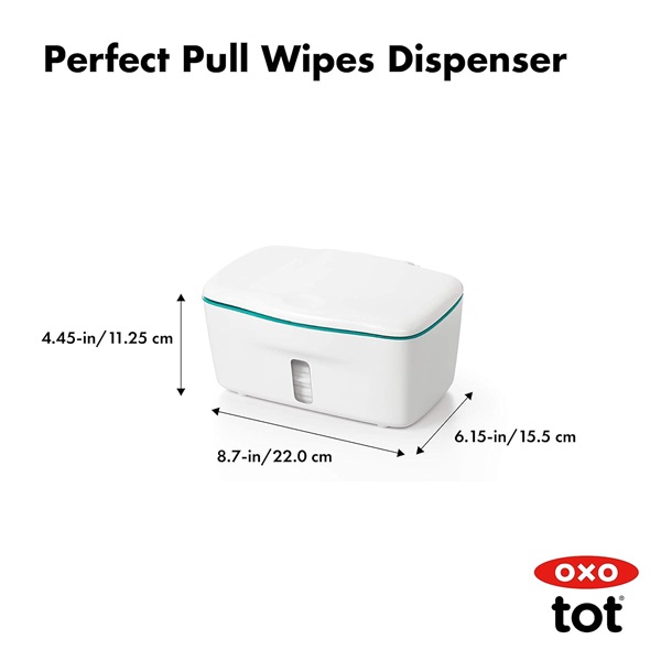 - Fits up to 100 wipes. The weighted plate dispenses one wipe at a time and the silicone gasket keeps wipes fresh and moist. Dimension:8.75″ x 6.5″ x 4.5″