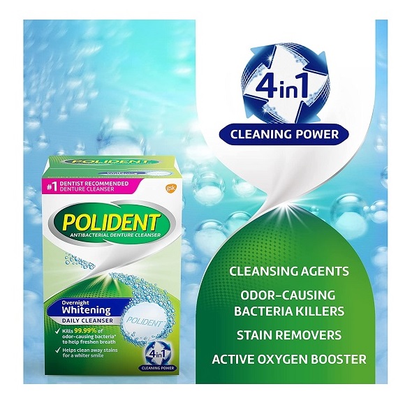 Polident HDS5525837 Overnight Whitening Denture Cleanser Tablets, 120 Count