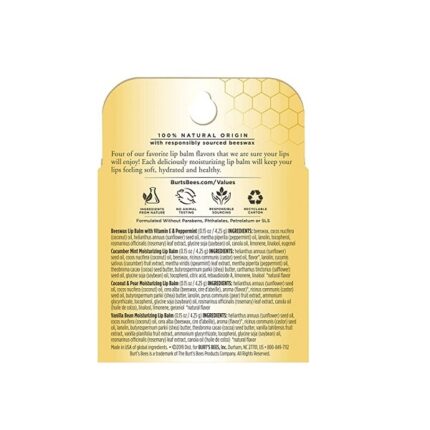 Burt’s Bees 100% Natural Moisturizing Lip Balm, Beeswax, 2 Tubes in Blister Box