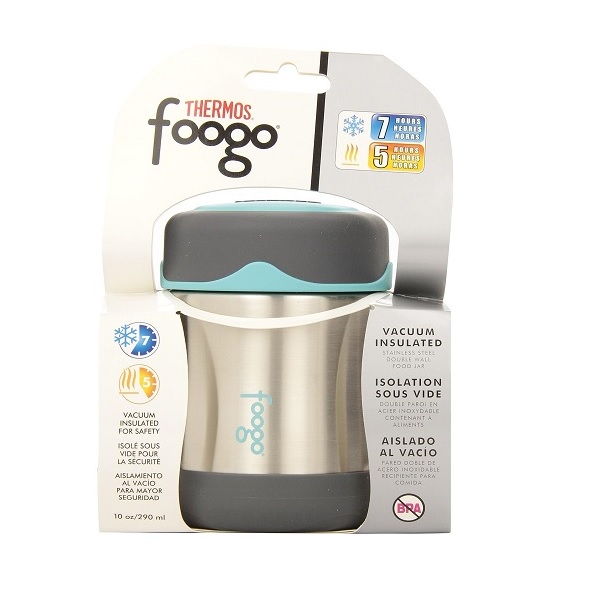 Thermos Foogo Vacuum Insulated Stainless Steel 10-Ounce Food Jar (Charcoal, Teal)