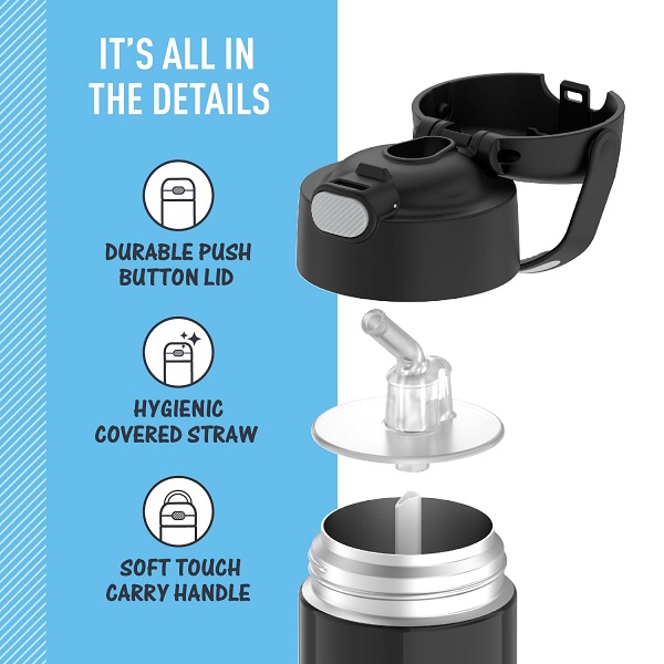 Easy care and cleaning: Help keep germs away with a hygienically covered pop-up straw that’s also removable for easy cleaning. This kids water bottle is dishwasher safe, though washing by hand is recommended
