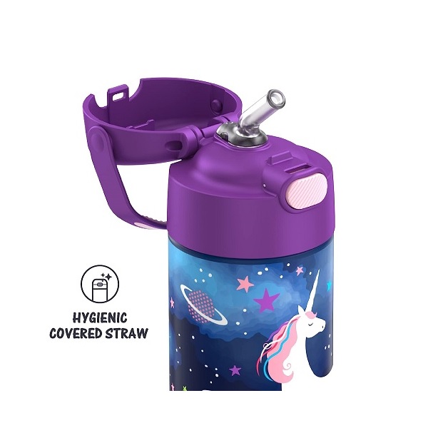 Thermos Funtainer 12 Ounce Stainless Steel Vacuum Insulated Kids Straw Bottle, Space Unicorn