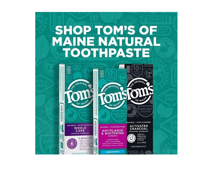 - Tom’s of Maine anti plaque and whitening fluoride free toothpaste is gluten-free, cruelty-free, and halal and kosher-certified