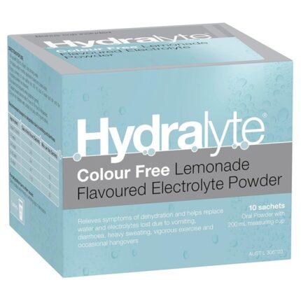 Hydralyte Colour Free Lemonade Flavoured Electrolyte Powder, 10 Sachets, Oral Rehydration