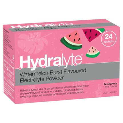 Hydralyte Watermelon Burst Flavoured Electrolyte Powder 24 Packs – Everyday Rehydration for Dehydration Relief Due to Heat, Travel, Illness & Exercise