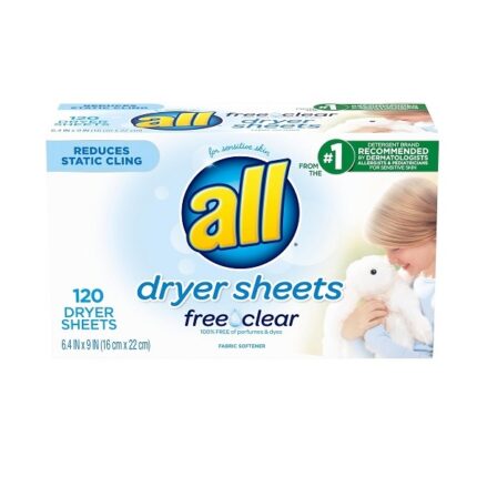 All Fabric Softener Dryer Sheets for Sensitive Skin, Free Clear, 120 Count