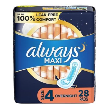Always Maxi Size 4 Feminine Pads without Wings Overnight Absorbency Unscented 28 Count
