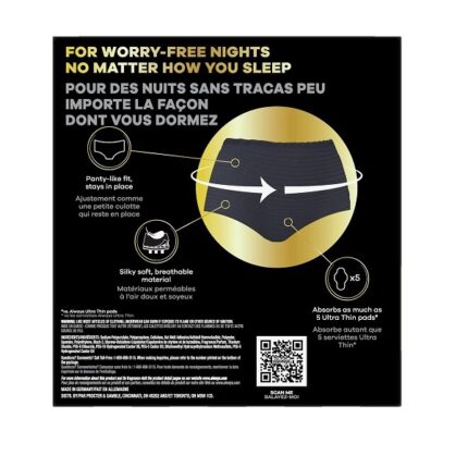 Always ZZZs Overnight Disposable Period Underwear for Women, Size S/M, Black Period Panties, Leakproof, 7 Count, Pack of 2 (14 Count Total)
