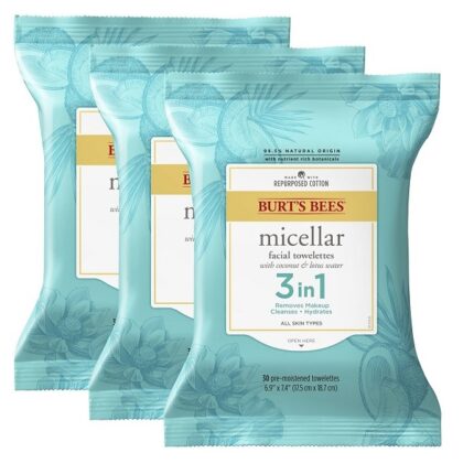 Burts Bees Micellar Makeup Removing Towelettes with Coconut & Lotus Water, 90 Count (Package May Vary)