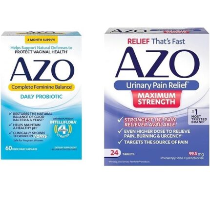 AZO Complete Feminine Balance Daily Probiotics for Women & Yeast Plus Dual Relief Tablets, Yeast Infection and Vaginal Symptom Relief, Relieves Itching & Burning, 60 Count
