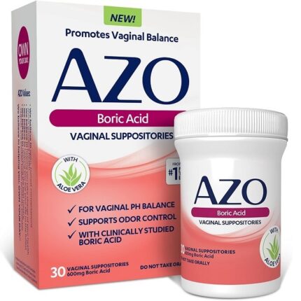 AZO Boric Acid Vaginal Suppositories, Helps Support Odor Control and Balance Vaginal PH with Clinically Studied Boric Acid, Non-GMO, 30 Count